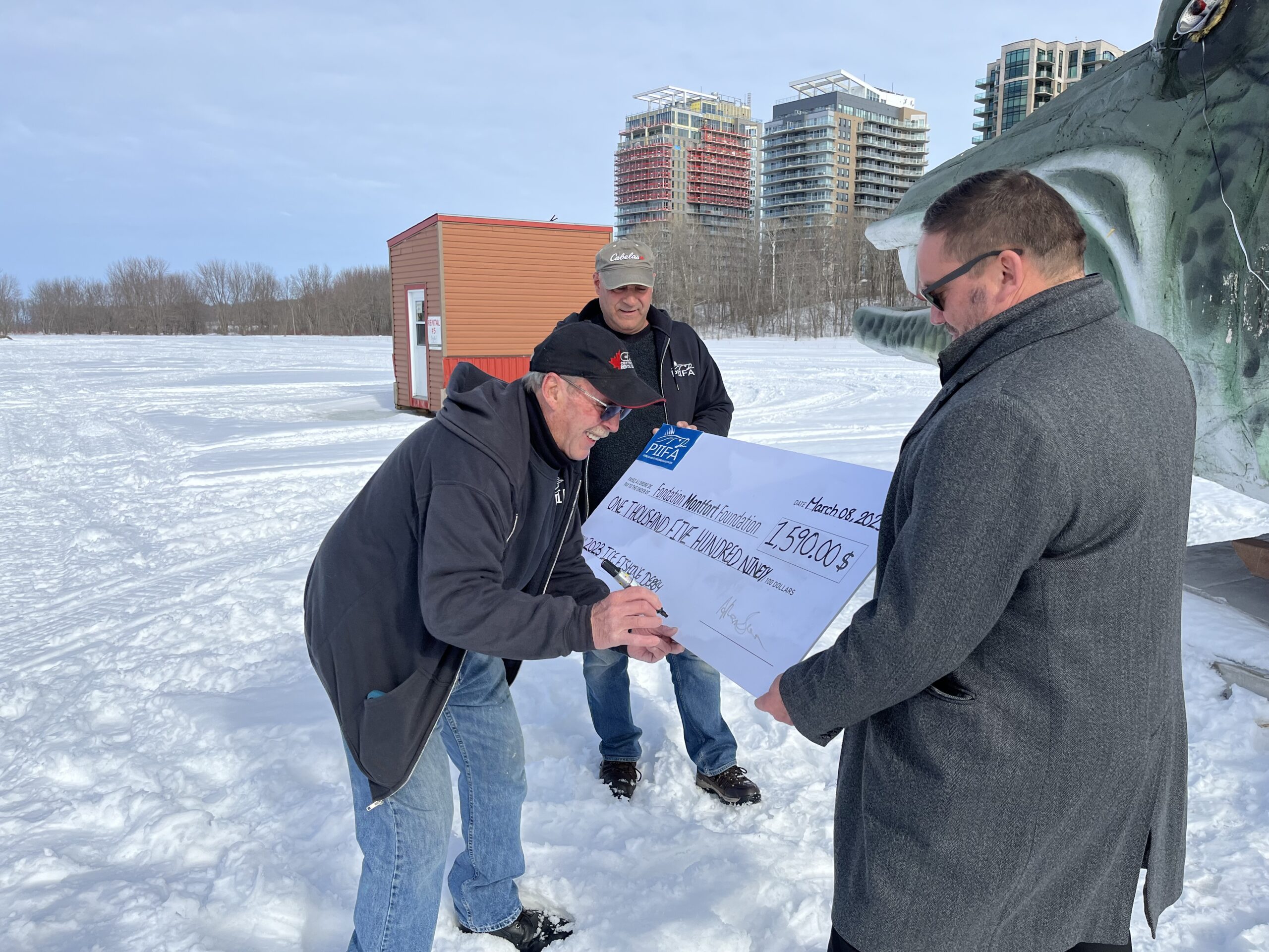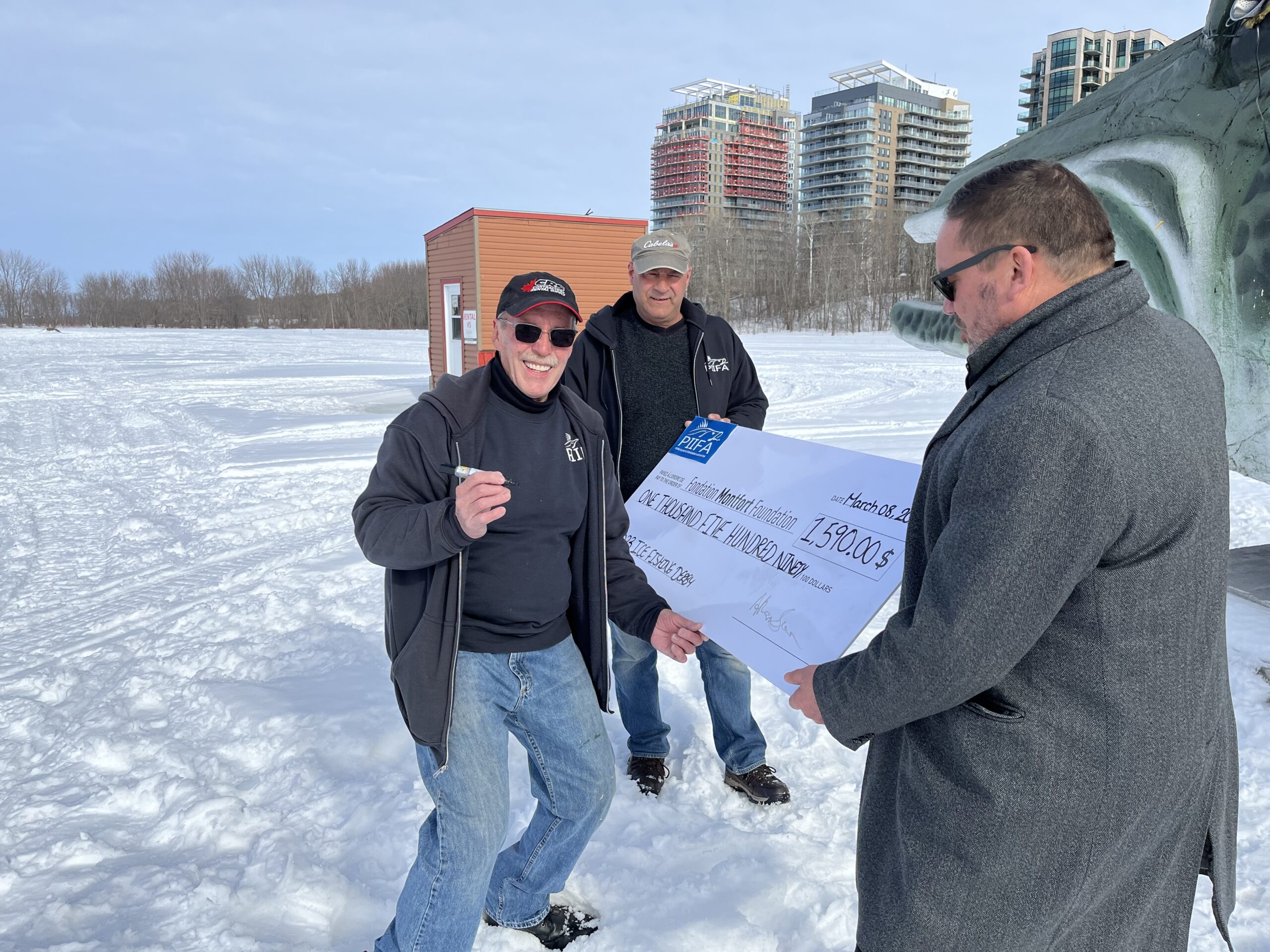 The Pétrie Island Ice Fishermen’s Association (PIIFA) in Orléans presents its annual tournament where several fishing enthusiasts meet on the frozen river, in their warm cabin, to wait for the fish to take the bait in order to unite their efforts and individual treasure behind a common cause. This year, the organizers chose to support the Montfort Foundation, a first for their association and for us as well.