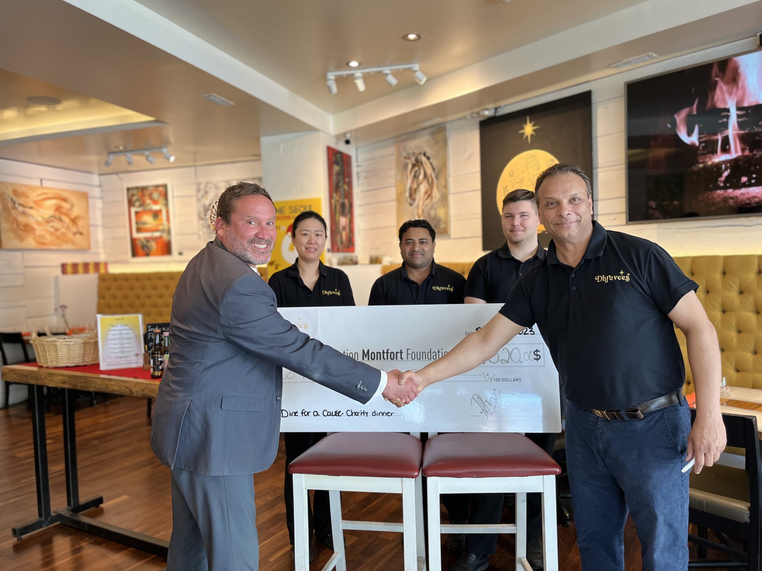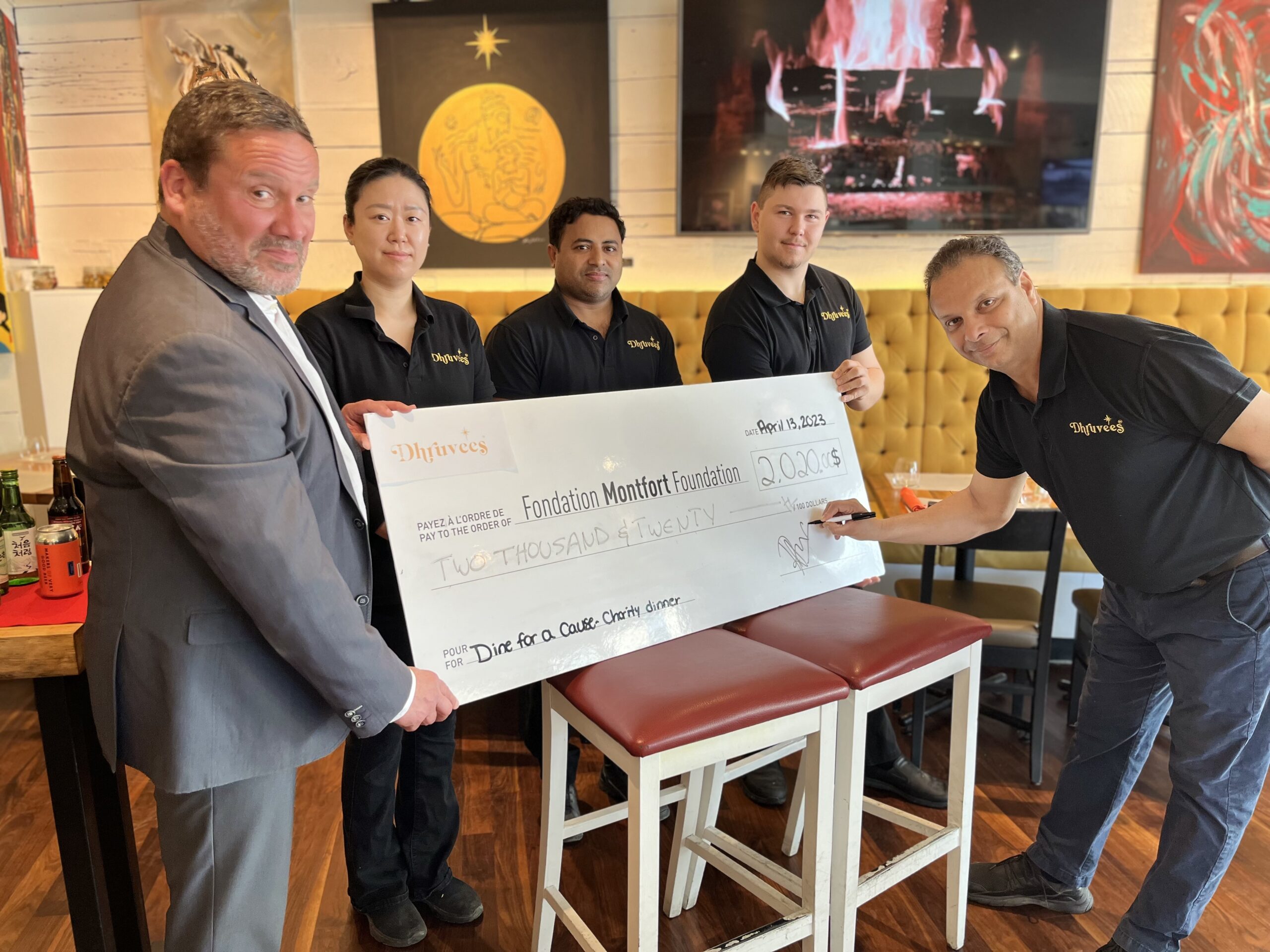These two gastronomic evenings were a great success! The room was packed with people, the atmosphere was welcoming and the food was colourful and tasty. These fundraising dinners allowed Wingell Hospitality to donate $2,020 to the Montfort Foundation.