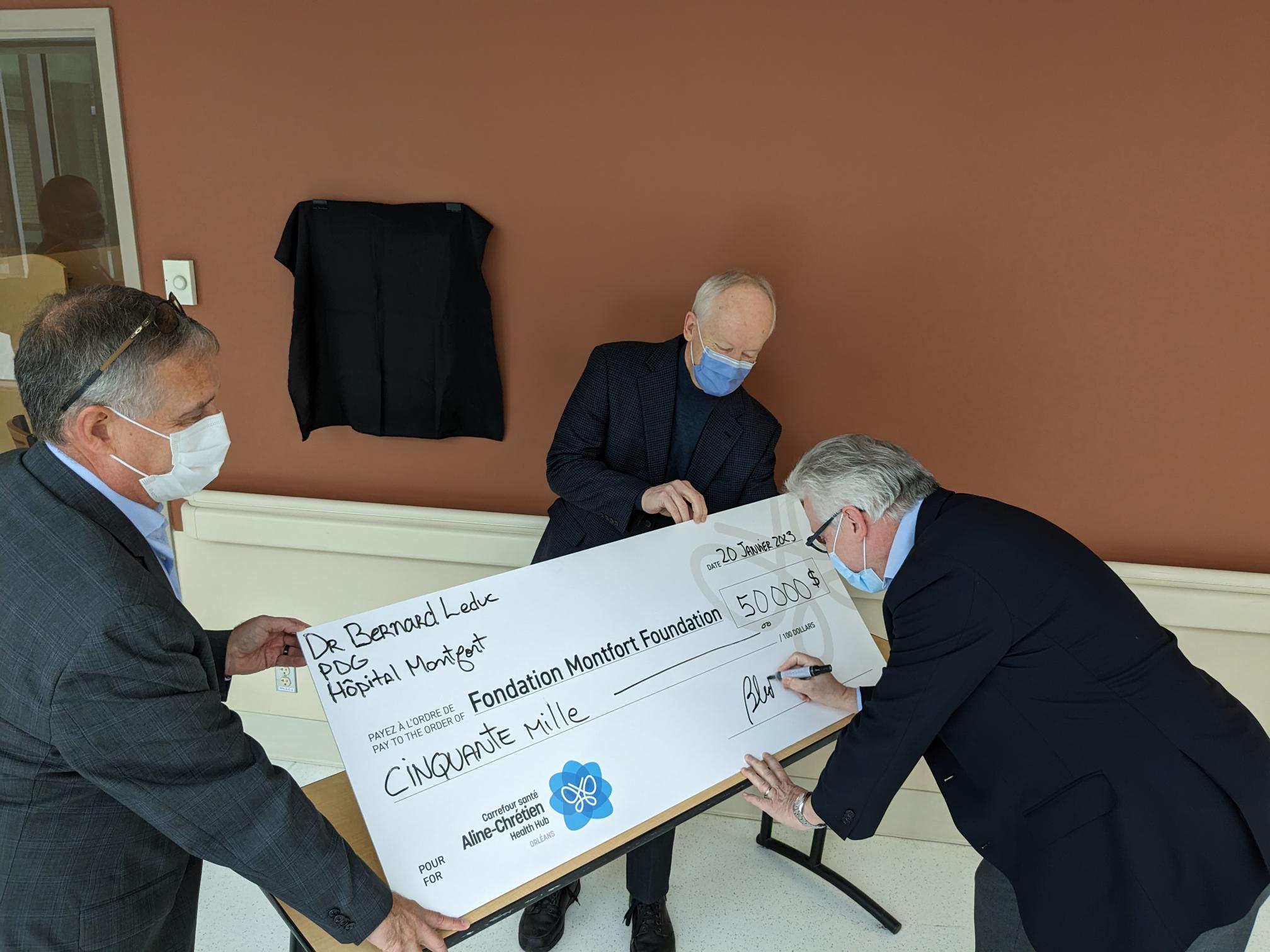 On September 9, 2021, Dr. Bernard Leduc made a pledge to the Montfort Foundation to donate $50,000 to the fundraising campaign for the construction of the Hub, an important project that he believes will greatly improve the quality of health care services in the region.