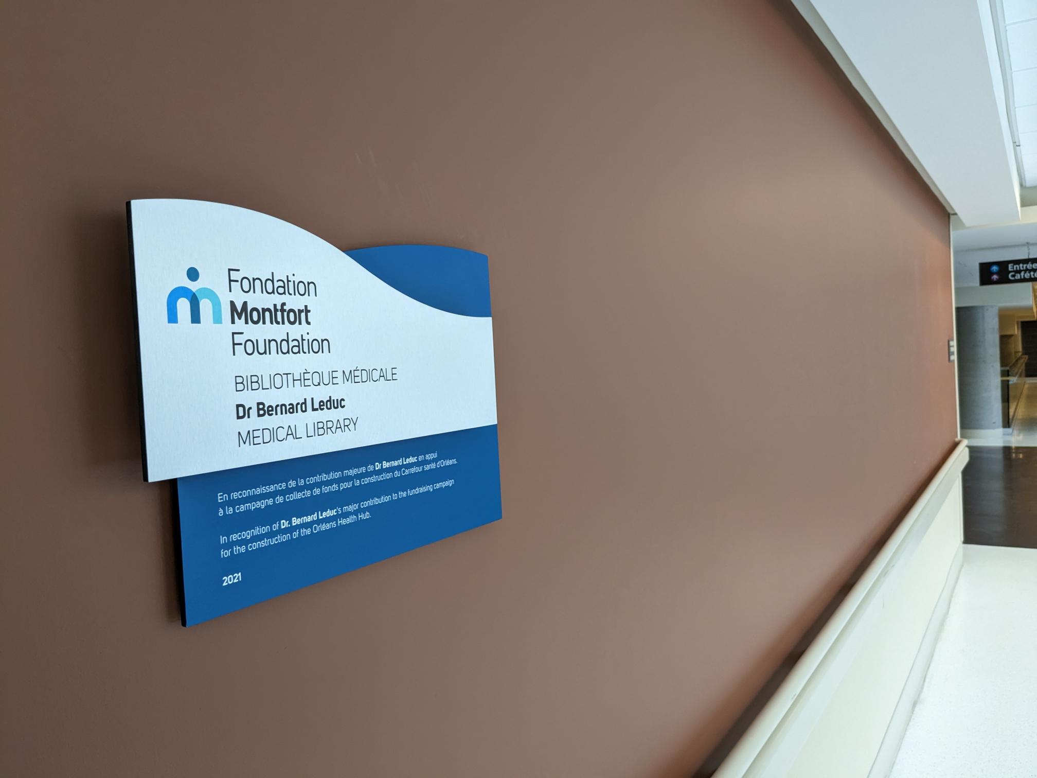 In recognition of his gift to the Hub, the Montfort Foundation has installed a plaque in the medical library at the Hôpital Montfort. Congratulations Dr. Leduc for this well-deserved honour.