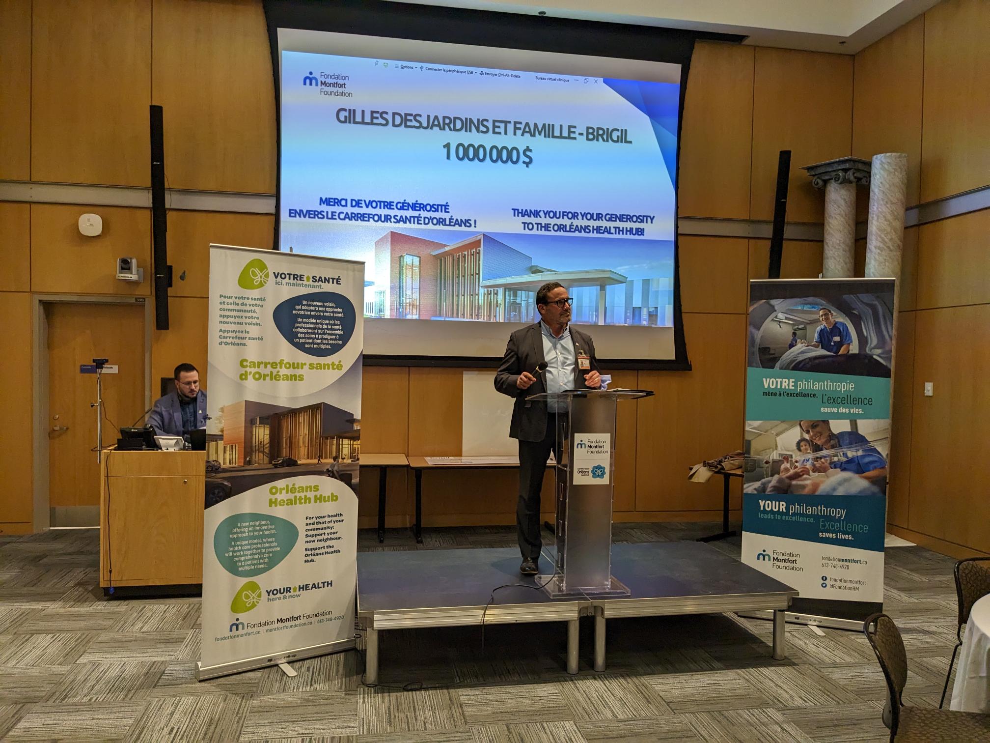“Gilles Desjardins’ philanthropic accomplishments over the past few years have had a direct impact on the population in many ways. His great generosity is exemplary, and the Fondation Montfort is privileged to have him on its side. It is therefore essential for us to publicly celebrate his generosity for his exceptional gift to the Aline-Chrétien Health Hub in Orléans,” said Marc Villeneuve, CEO of the Fondation Montfort.